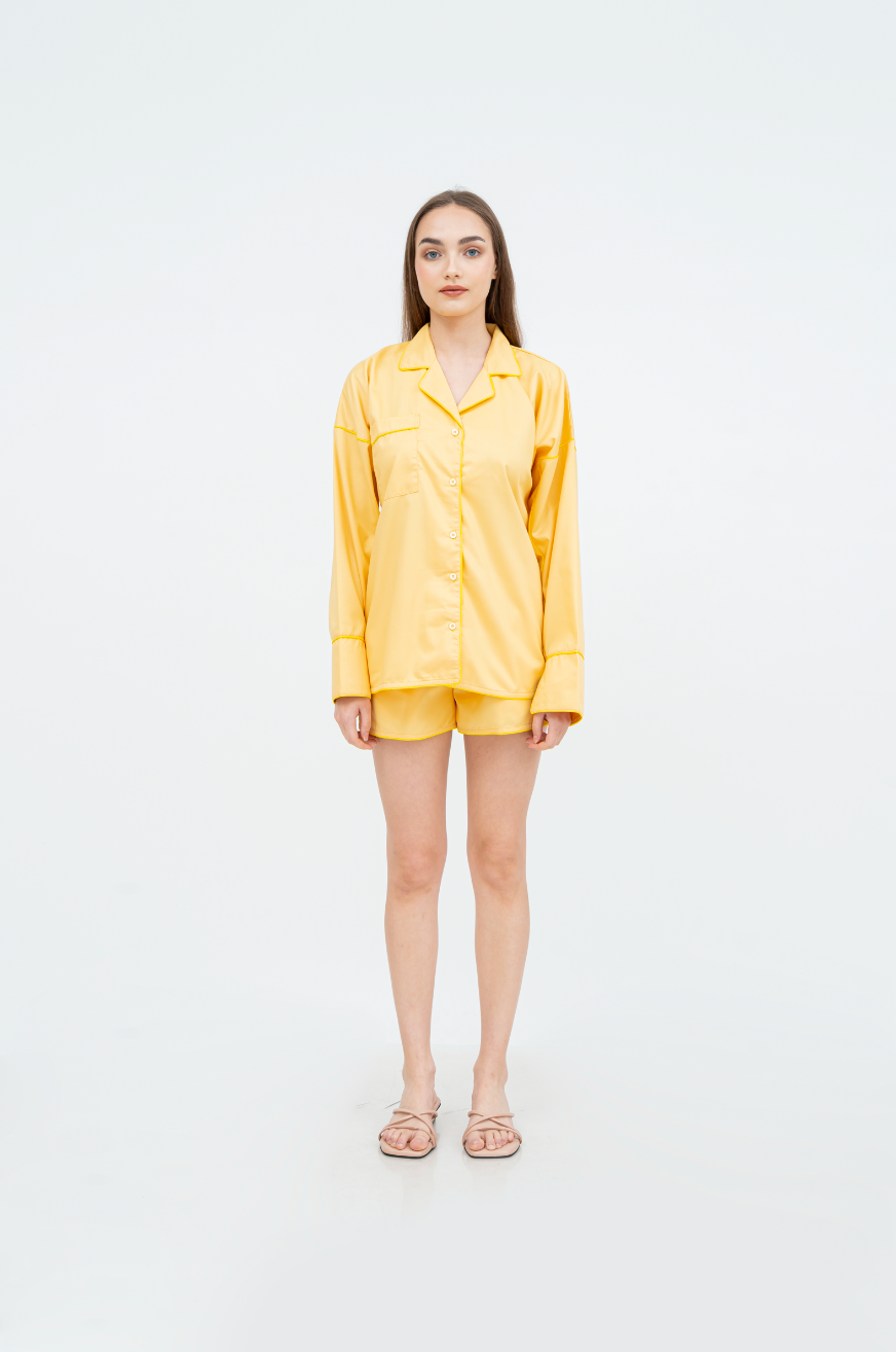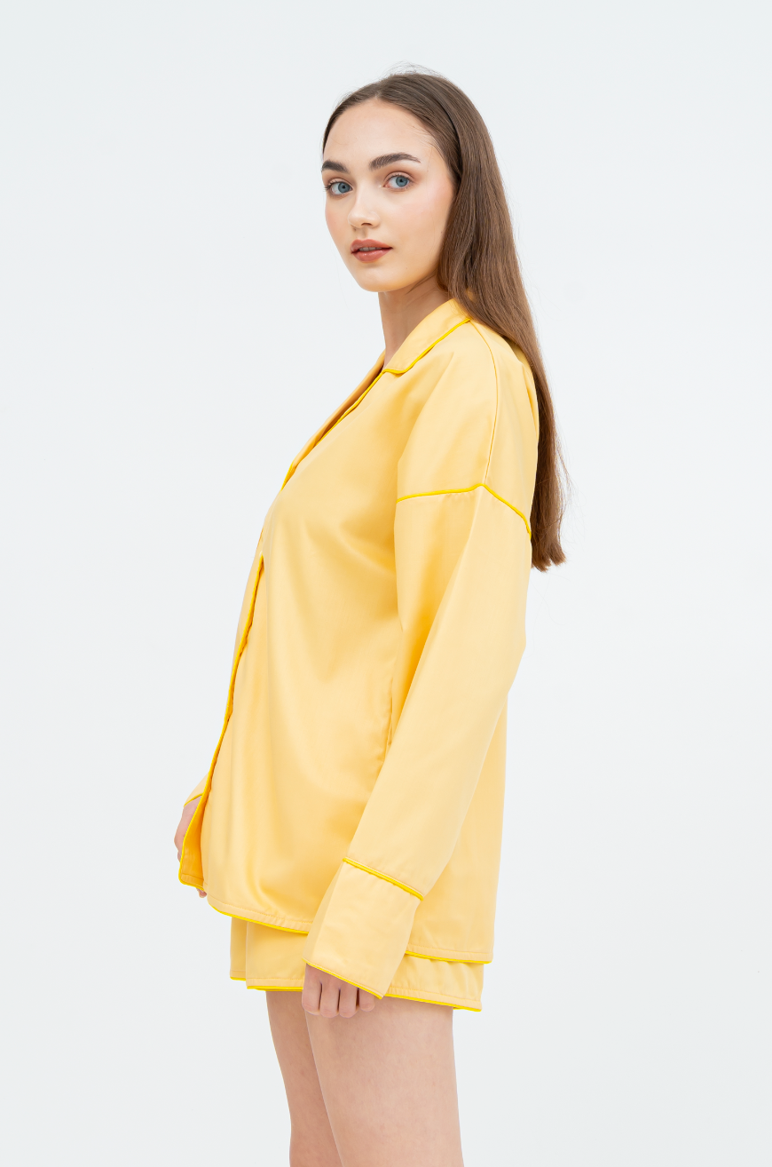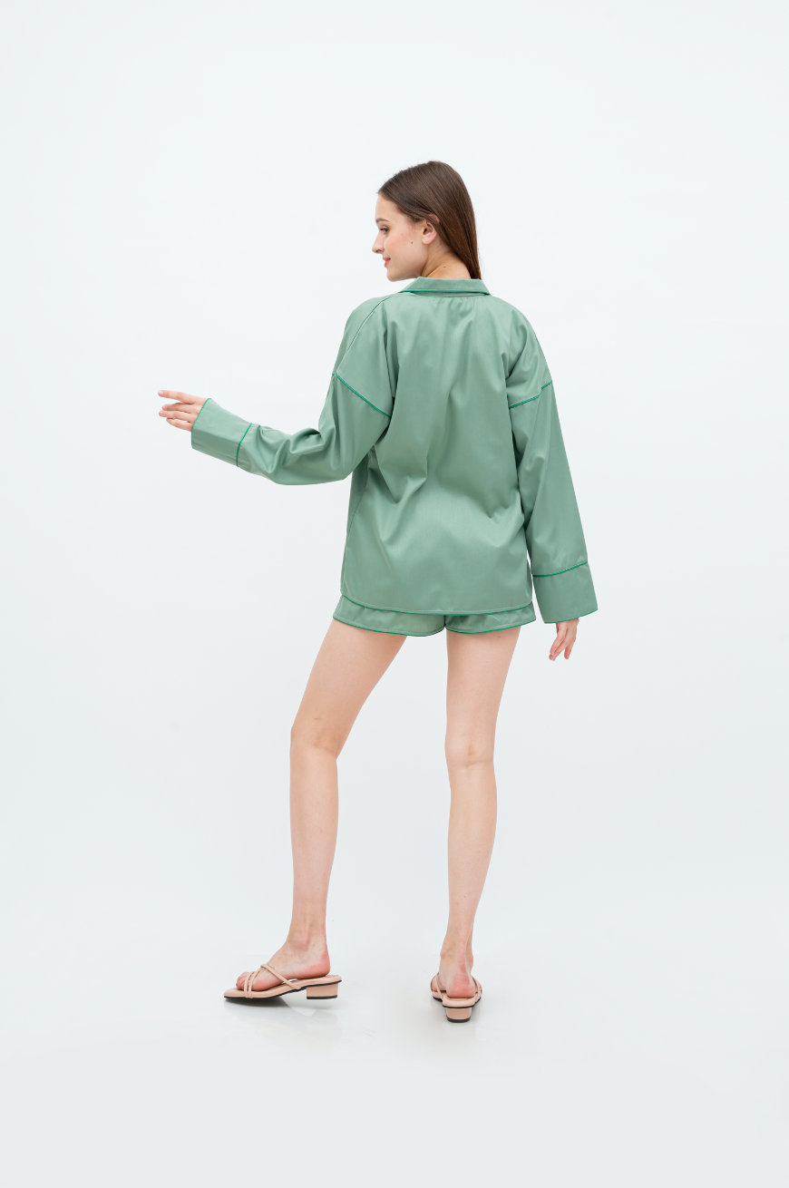 Catalina long sleeve set (White/Green/Yellow) is stylish and yet soft pyjama set, made for relaxing in style. Beautiful detail on the clothes makes it more stylish and pocket both sides of the pant.